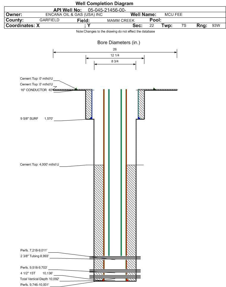 | | Perforation Data: | | Interval Top: | 9518 ft. | # Of Holes: | 27 | | Interval Bottom: | 9703 ft. | Hole Size: | 0.38 in. |