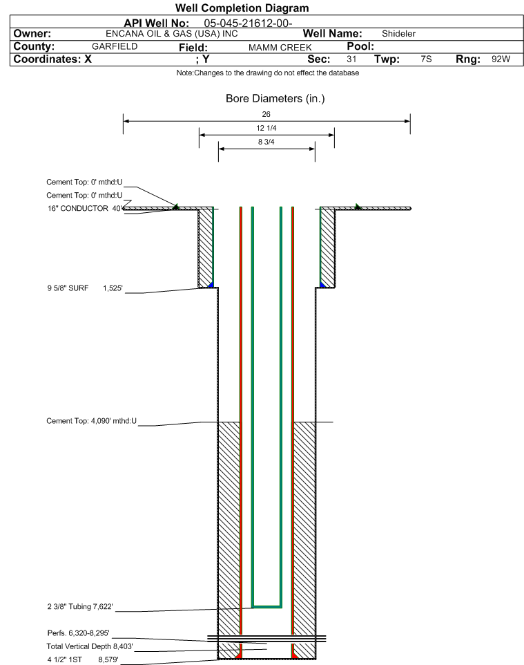 | | Perforation Data: | | Interval Top: | 6320 ft. | # Of Holes: | 189 | | Interval Bottom: | 8295 ft. | Hole Size: | 0.38 in. |