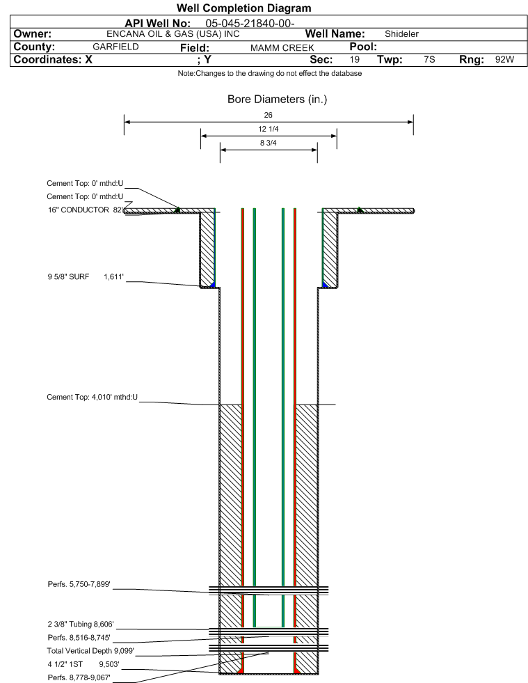 | | Perforation Data: | | Interval Top: | 8516 ft. | # Of Holes: | 27 | | Interval Bottom: | 8745 ft. | Hole Size: | 0.38 in. |