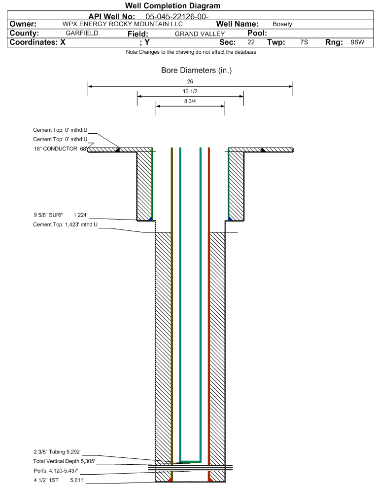 | | Perforation Data: | | Interval Top: | 4120 ft. | # Of Holes: | 99 | | Interval Bottom: | 5437 ft. | Hole Size: | 0.35 in. |