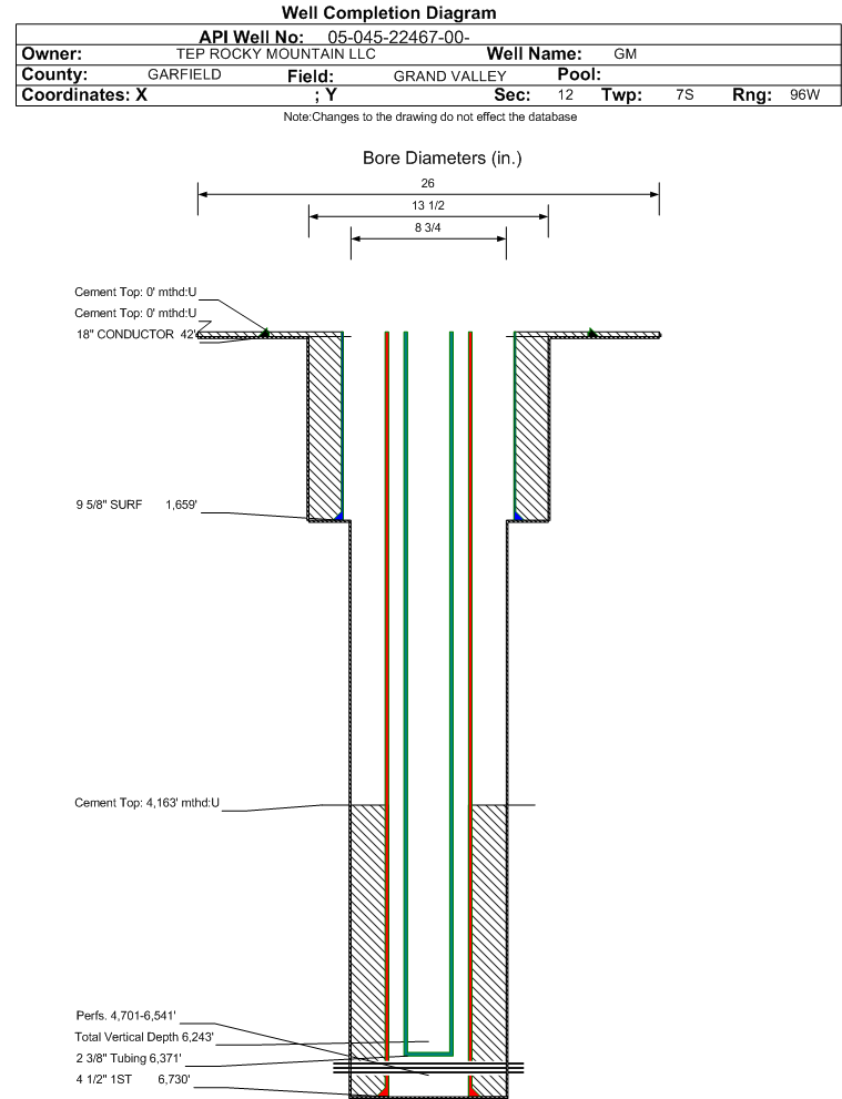 Cement:Sacks: 1095, Top: 4163 ft., Bottom: 6730 ft., Determination Method: CBL