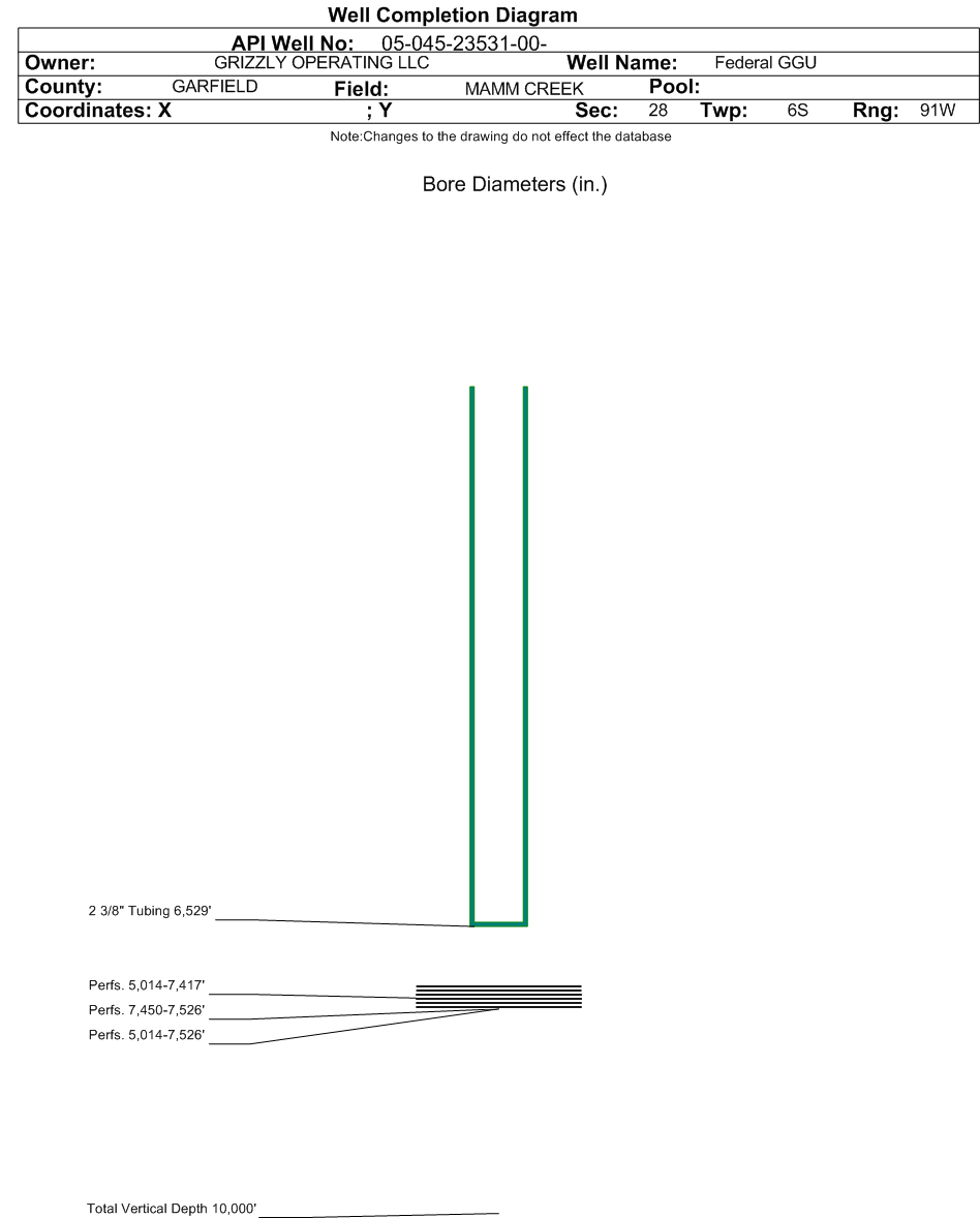 | | Perforation Data: | | Interval Top: | 5014 ft. | # Of Holes: | 339 | | Interval Bottom: | 7417 ft. | Hole Size: | 0.37 in. |