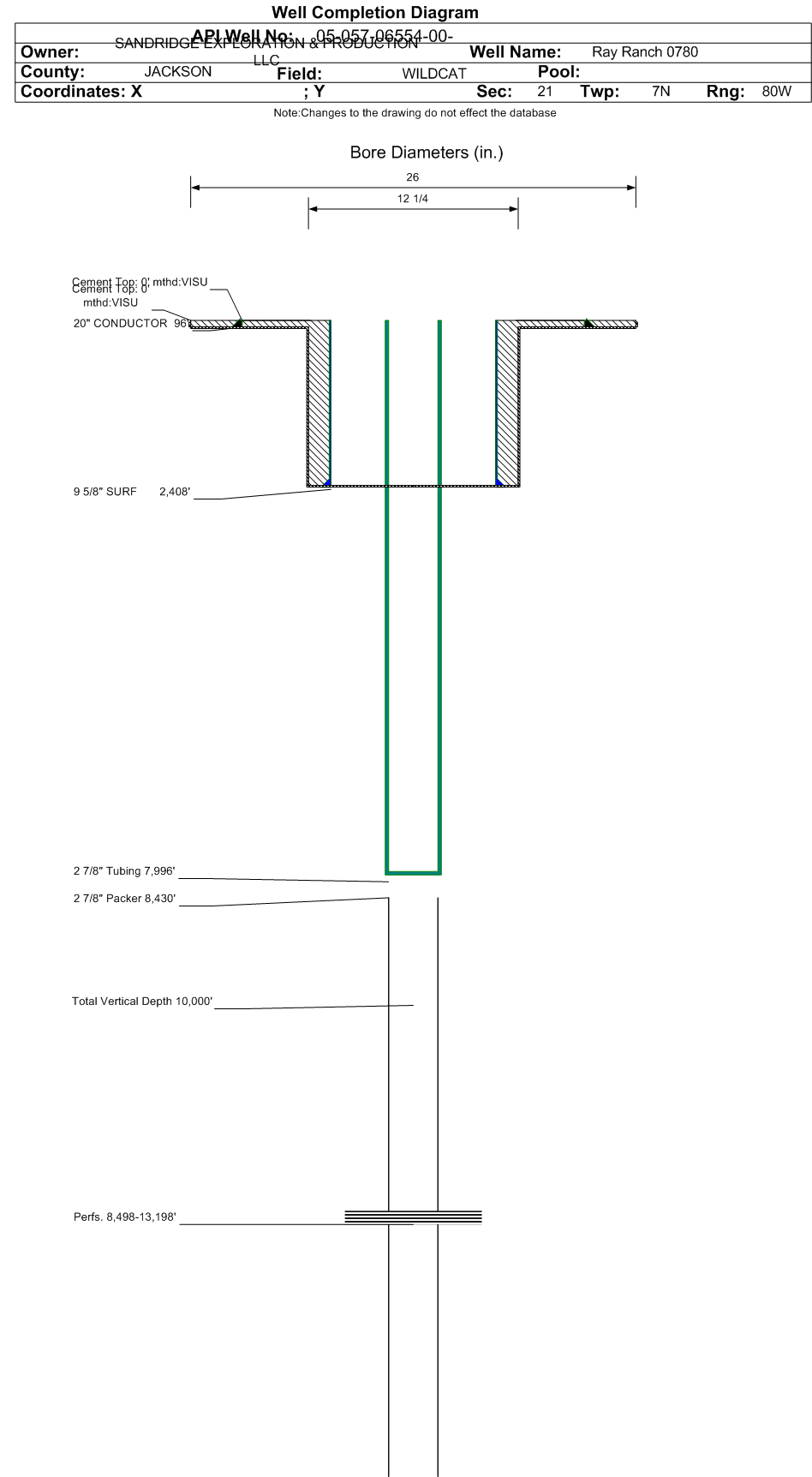 | | Perforation Data: | | Interval Top: | 8498 ft. | # Of Holes: | 672 | | Interval Bottom: | 13198 ft. | Hole Size: | 0.42 in. |