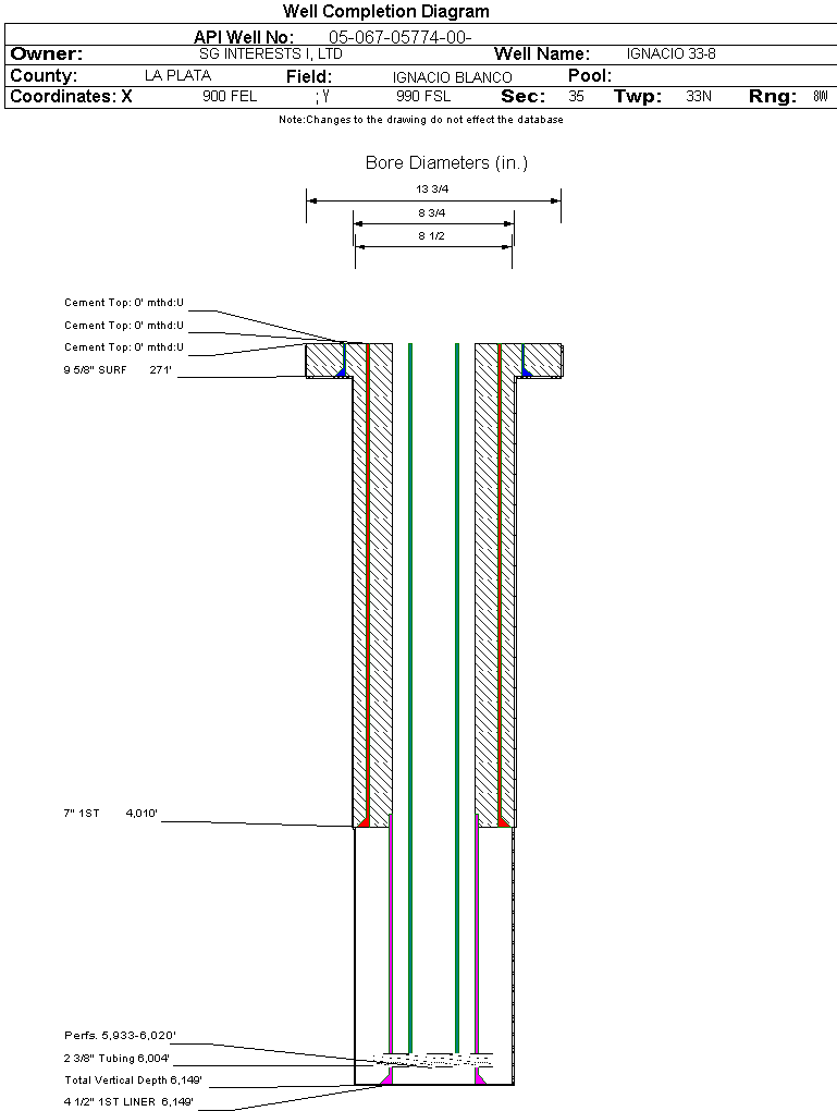 | | Perforation Data: | | Interval Top: | 5933 ft. | # Of Holes: | | | Interval Bottom: | 6020 ft. | Hole Size: | |