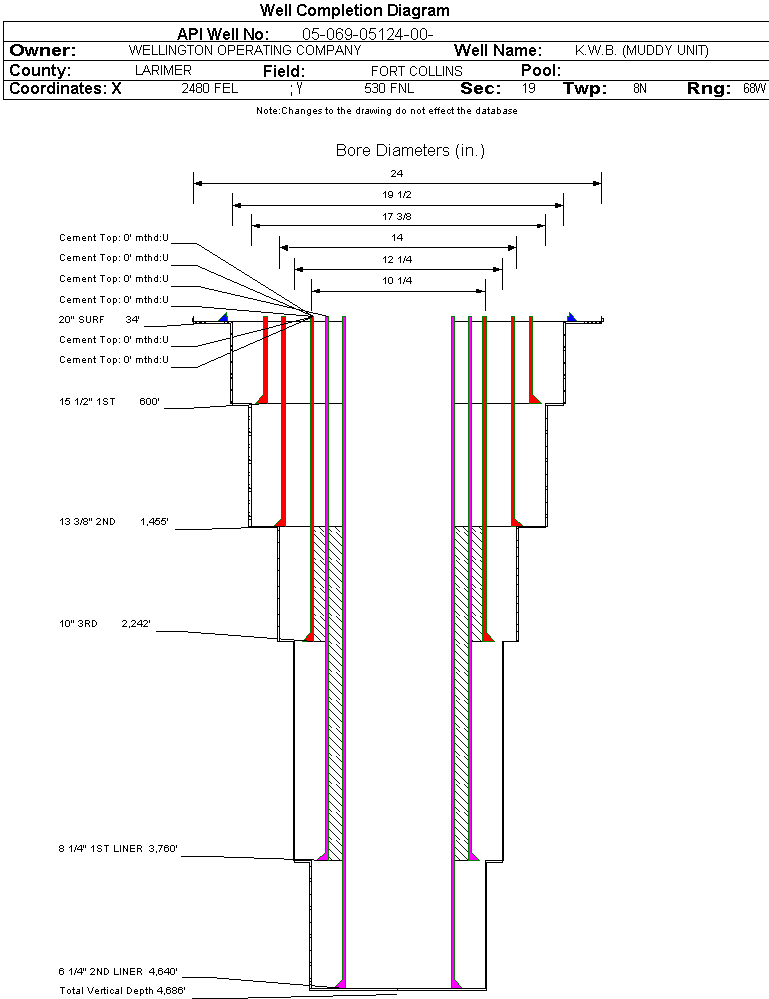 Wellbore #00 Wellbore Classification: OW Status: PR - 2/1/2023 Measured TD: 4686 ft. Vertical TD: 0 ft.| Wellbore Data for Original Wellbore | Wellbore Classification: OW PR - 2/1/2023 | | Wellbore Permit | | | Permit #: | 19280000 | Expiration Date: | 6/21/1928 | | Proposed Depth/Form: | | | Surface Mineral Owner Same: | Not available | | Mineral Owner: | FEE | Surface Owner: | Not available | | Unit: | MUDDY SANDSTONE | Unit Number: | |