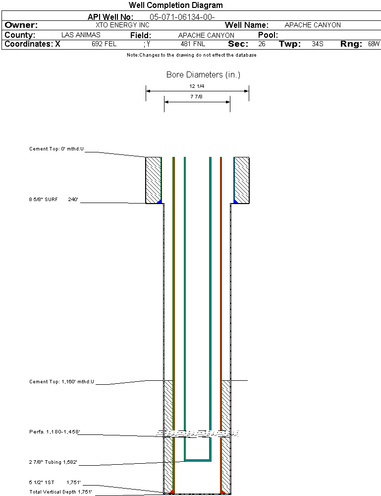 | | Perforation Data: | | Interval Top: | 1180 ft. | # Of Holes: | 252 | | Interval Bottom: | 1458 ft. | Hole Size: | 0.7 in. |