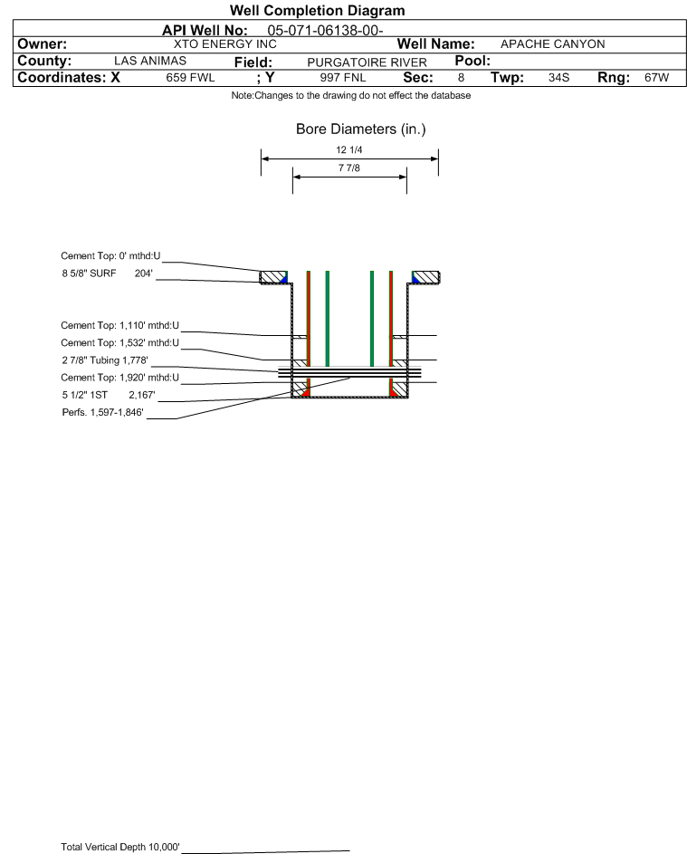 | | Perforation Data: | | Interval Top: | 1597 ft. | # Of Holes: | 174 | | Interval Bottom: | 1846 ft. | Hole Size: | 0.7 in. |