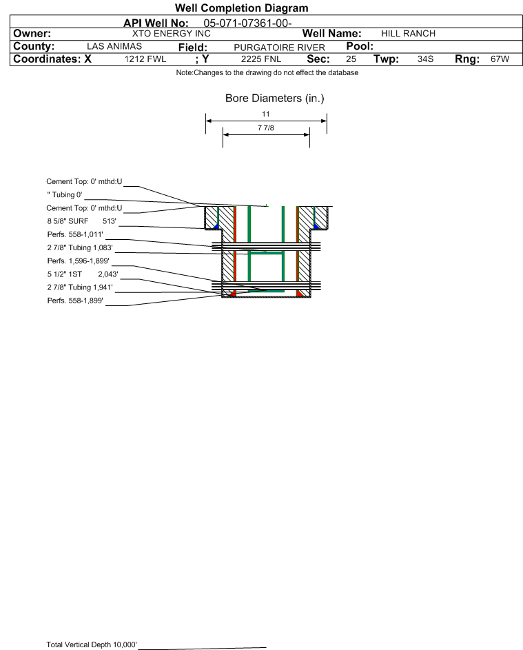 | | Perforation Data: | | Interval Top: | 558 ft. | # Of Holes: | 166 | | Interval Bottom: | 1899 ft. | Hole Size: | |