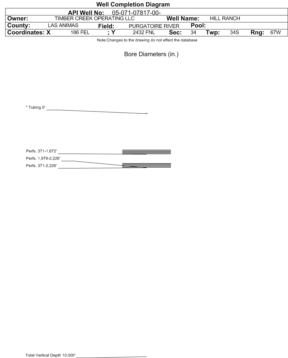 | | Perforation Data: | | Interval Top: | 371 ft. | # Of Holes: | 135 | | Interval Bottom: | 2226 ft. | Hole Size: | 0.4 in. |