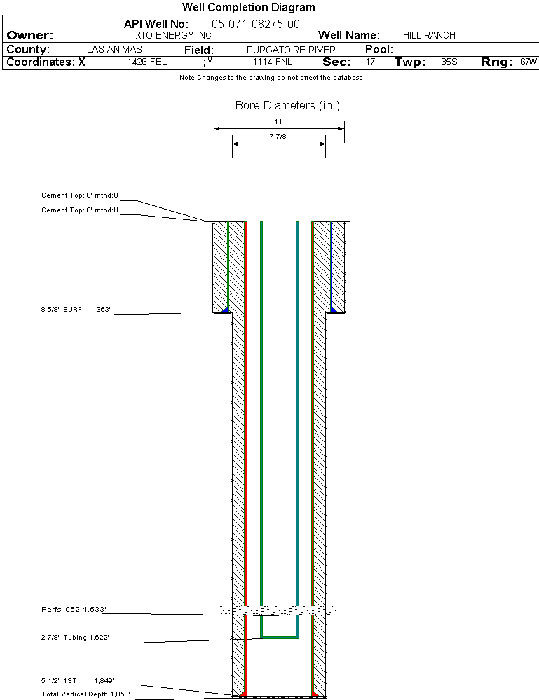 | | Perforation Data: | | Interval Top: | 952 ft. | # Of Holes: | 60 | | Interval Bottom: | 1533 ft. | Hole Size: | |