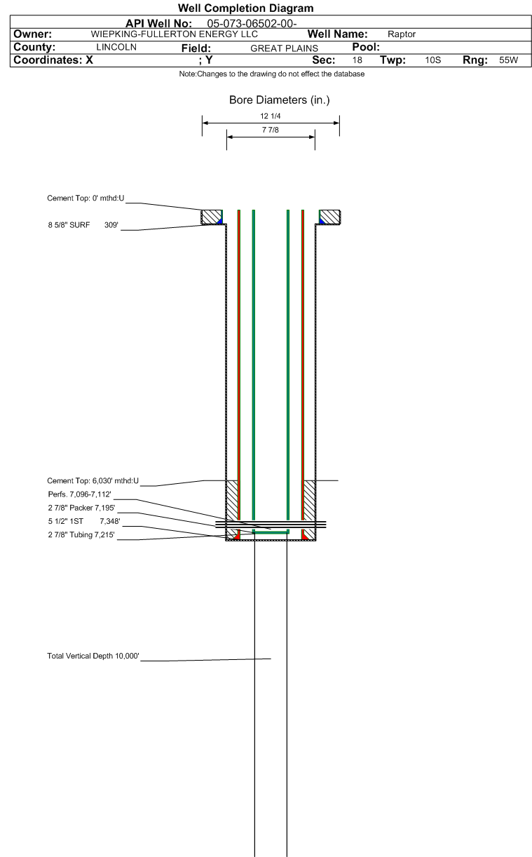 | | Perforation Data: | | Interval Top: | 7096 ft. | # Of Holes: | 64 | | Interval Bottom: | 7112 ft. | Hole Size: | 0.25 in. |