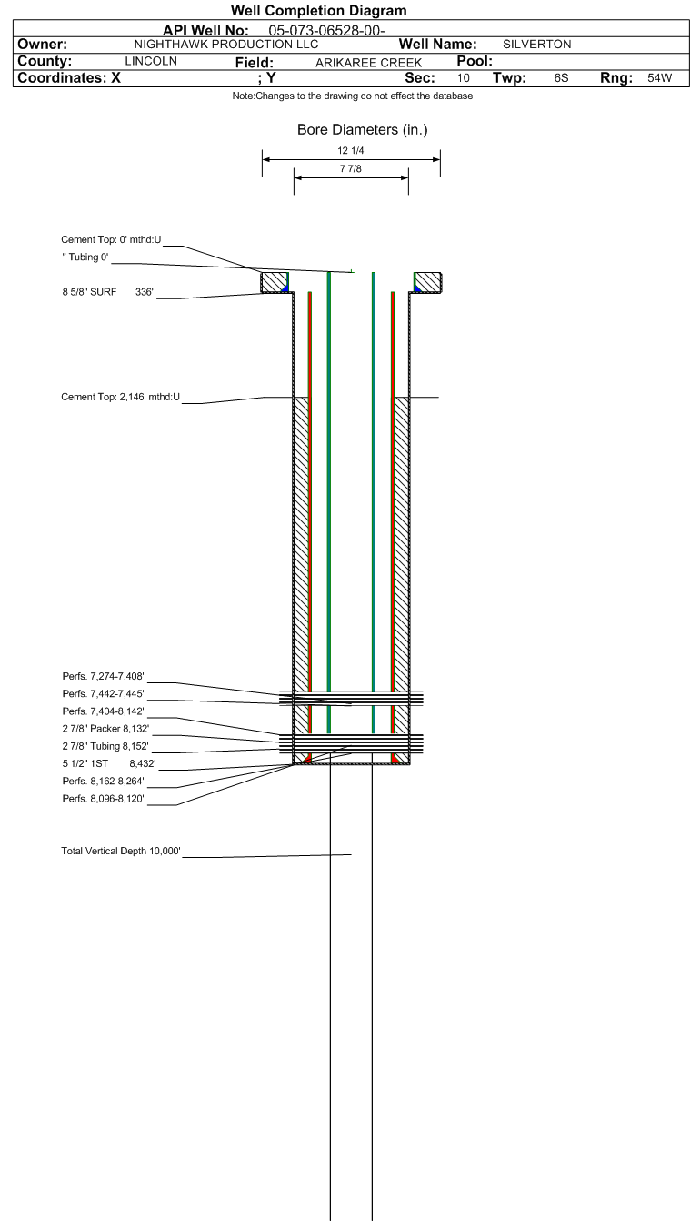 | | Perforation Data: | | Interval Top: | 8096 ft. | # Of Holes: | 0 | | Interval Bottom: | 8120 ft. | Hole Size: | 0.52 in. |