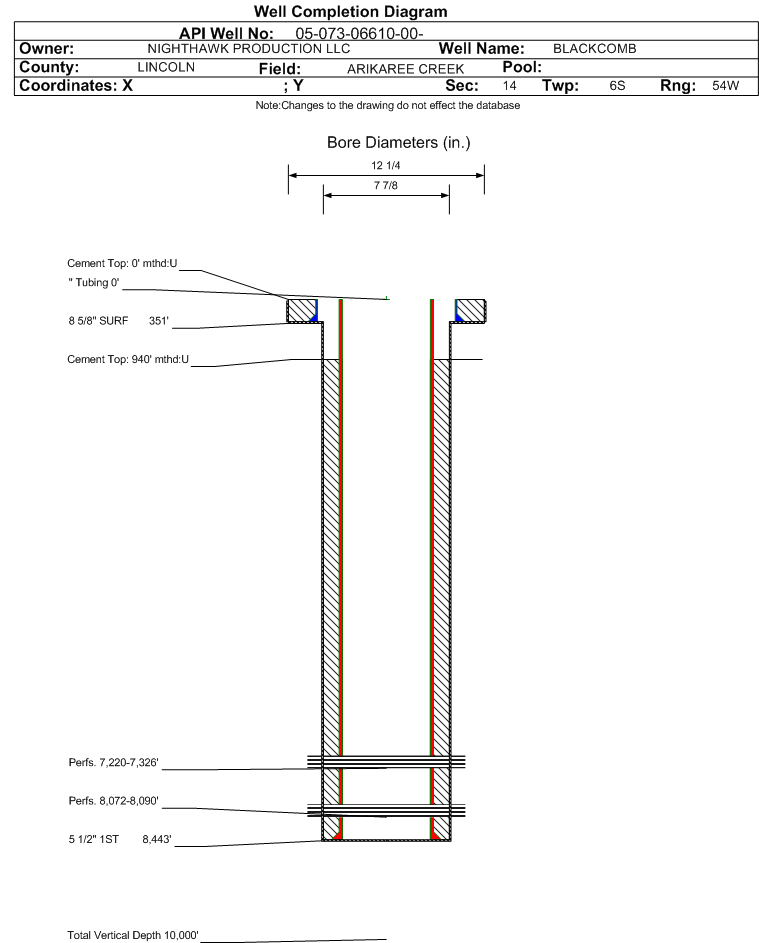 | Treatment Summary: | Perf'd 8,072'-8,090' w/ 6spf, 108 holes, 4" scallop gun, 26gm shot, .46" EHD 51.3" penetration (listed since different info that initial perf info reported)