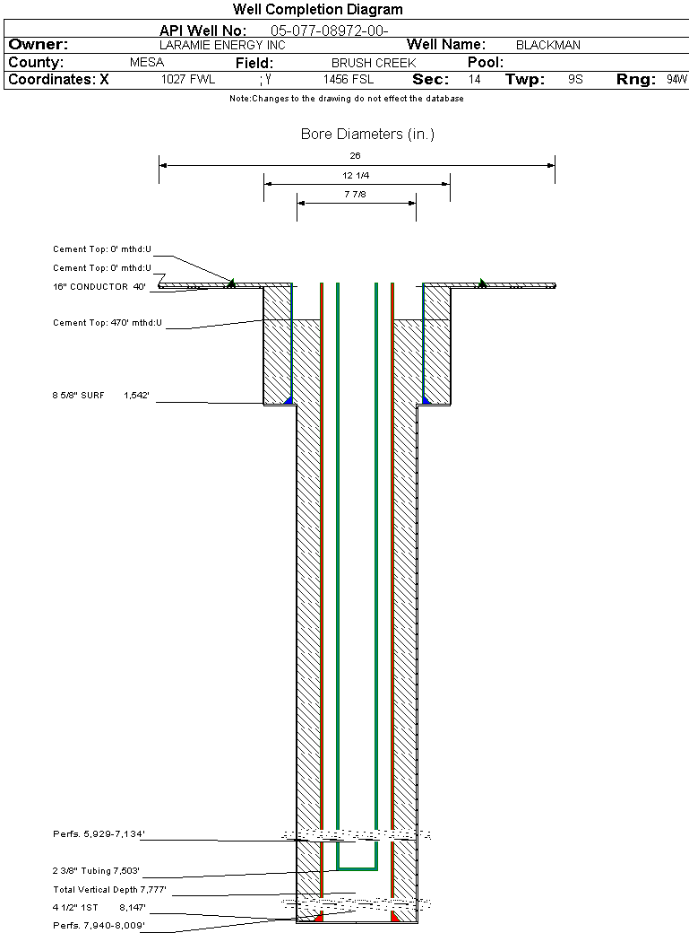 Click image to view related facilities. Related  Click image to view inspection information. InspClick image to view MIT information. MITClick image to access interactive map at well/facility location. GISClick image to view imaged documents for this well/facility. DocClick image to view imaged documents for this well/facility. COAClick image to view wellbore completion diagram. WellboreClick image to search for orders within this facility's section. OrdersClick image to view bradenhead scoutcard data. Bradenhead