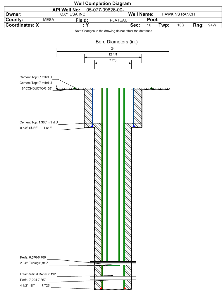 Wellbore #00 Wellbore Classification: GW Status: PR - 3/7/2010 Measured TD: 7766 ft. Vertical TD: 7192 ft.| Wellbore Data for Original Wellbore | Wellbore Classification: GW PR - 3/7/2010 | | Wellbore Permit | DIRECTIONAL | | Permit #: | 20081422 | Expiration Date: | 4/24/2009 | | Proposed Top PZ Location: | Sec:10 Twp: 10S 94W | Footage: 960 FNL 2046 FEL | | Bottom Hole Location: | Sec:10 Twp: 10S 94W | Footage: 960 FNL 2046 FEL | | Proposed Depth/Form: | 6969 ft. | | Surface Mineral Owner Same: | Yes | | Mineral Owner: | FEE | Surface Owner: | FEE | | Unit: | | Unit Number: | | | Formation And Spacing: | Code: MVRD , Formation: MESAVERDE , Order: 166-25 , Unit Acreage: , Drill Unit: |