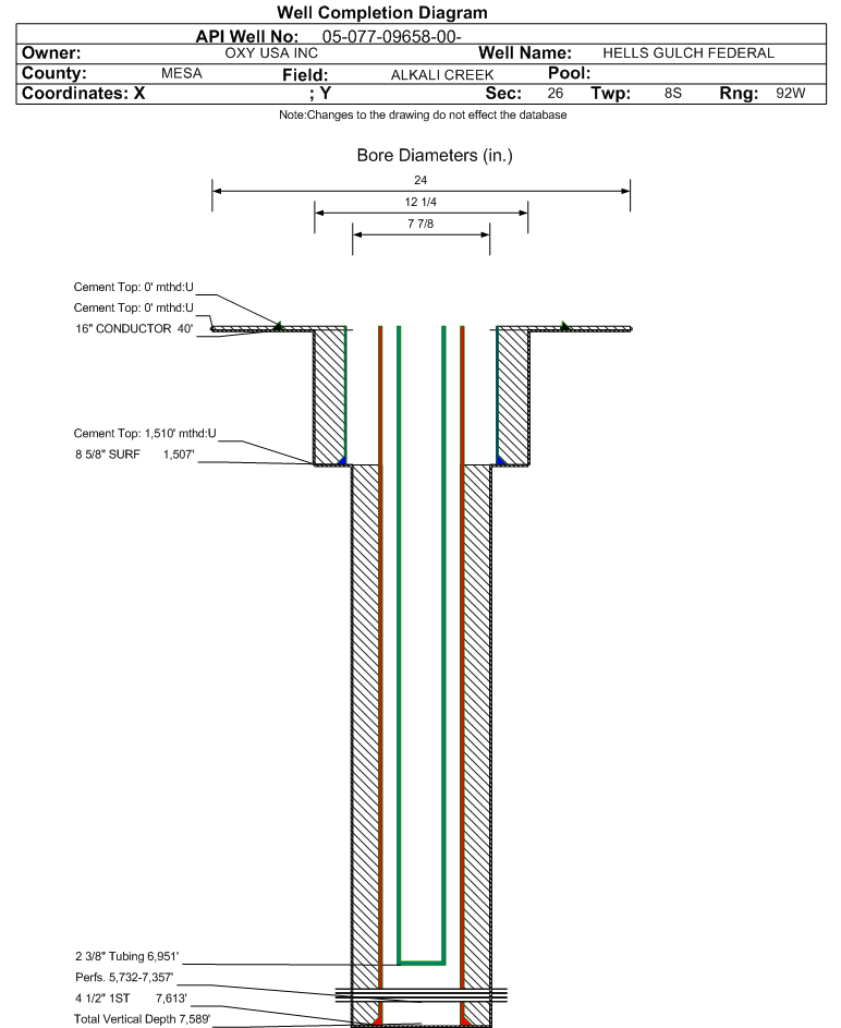 Wellbore #00 Wellbore Classification: GW Status: PR - 4/23/2009 Measured TD: 7617 ft. Vertical TD: 7589 ft.| Wellbore Data for Original Wellbore | Wellbore Classification: GW PR - 4/23/2009 | | Wellbore Permit | DIRECTIONAL | | Permit #: | 20083062 | Expiration Date: | 6/12/2009 | | Proposed Top PZ Location: | Sec: Twp: | Footage: 439 FSL 658 FWL | | Bottom Hole Location: | Sec:23 Twp: 8S 92W | Footage: 439 FSL 658 FWL | | Proposed Depth/Form: | 7602 ft. | | Surface Mineral Owner Same: | Yes | | Mineral Owner: | FEDERAL | Surface Owner: | FEDERAL | | Unit: | | Unit Number: | | | Formation And Spacing: | Code: MVRD , Formation: MESAVERDE , Order: 529-1 , Unit Acreage: , Drill Unit: |