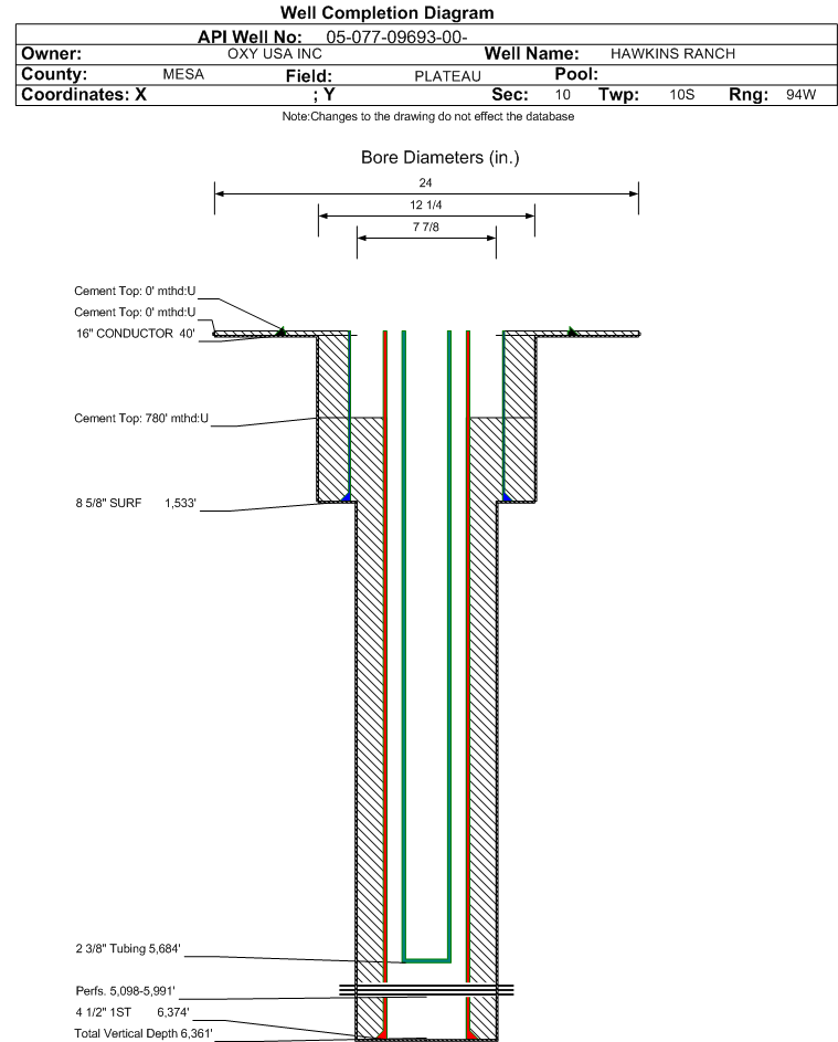 | | Perforation Data: | | Interval Top: | 5098 ft. | # Of Holes: | 78 | | Interval Bottom: | 5991 ft. | Hole Size: | 0.35 in. |