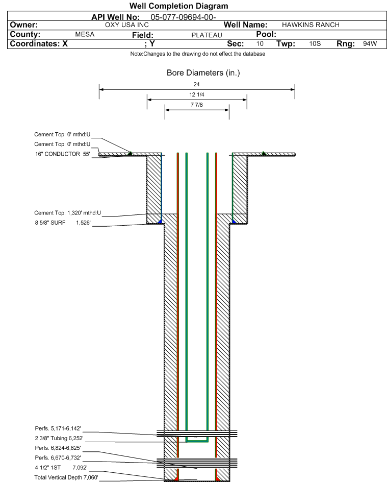 Wellbore #00 Wellbore Classification: OW Status: PR - 2/15/2010 Measured TD: 7092 ft. Vertical TD: 7060 ft.| Wellbore Data for Original Wellbore | Wellbore Classification: OW PR - 2/15/2010 | | Wellbore Permit | DIRECTIONAL | | Permit #: | 20083684 | Expiration Date: | 7/29/2009 | | Proposed Top PZ Location: | Sec: Twp: | Footage: 1070 FNL 697 FWL | | Bottom Hole Location: | Sec:10 Twp: 10S 94W | Footage: 1070 FNL 697 FWL | | Proposed Depth/Form: | 6376 ft. | | Surface Mineral Owner Same: | Yes | | Mineral Owner: | FEE | Surface Owner: | FEE | | Unit: | | Unit Number: | | | Formation And Spacing: | Code: MVRD , Formation: MESAVERDE , Order: 166-25 , Unit Acreage: , Drill Unit: |
