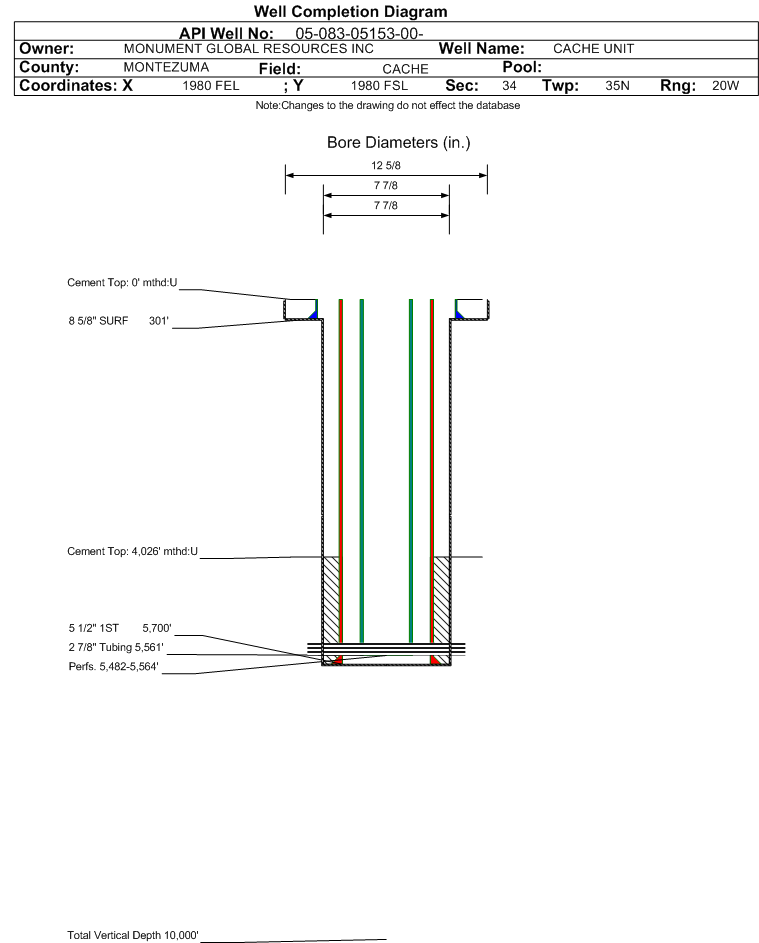 | | Perforation Data: | | Interval Top: | 5482 ft. | # Of Holes: | | | Interval Bottom: | 5564 ft. | Hole Size: | |