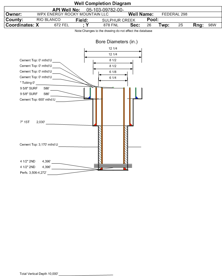 | | Perforation Data: | | Interval Top: | 3506 ft. | # Of Holes: | 0 | | Interval Bottom: | 4272 ft. | Hole Size: | 0.38 in. |