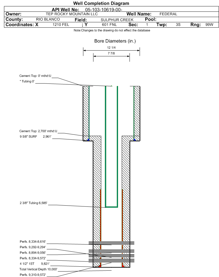 | | Perforation Data: | | Interval Top: | 9310 ft. | # Of Holes: | 51 | | Interval Bottom: | 9572 ft. | Hole Size: | 0.35 in. |