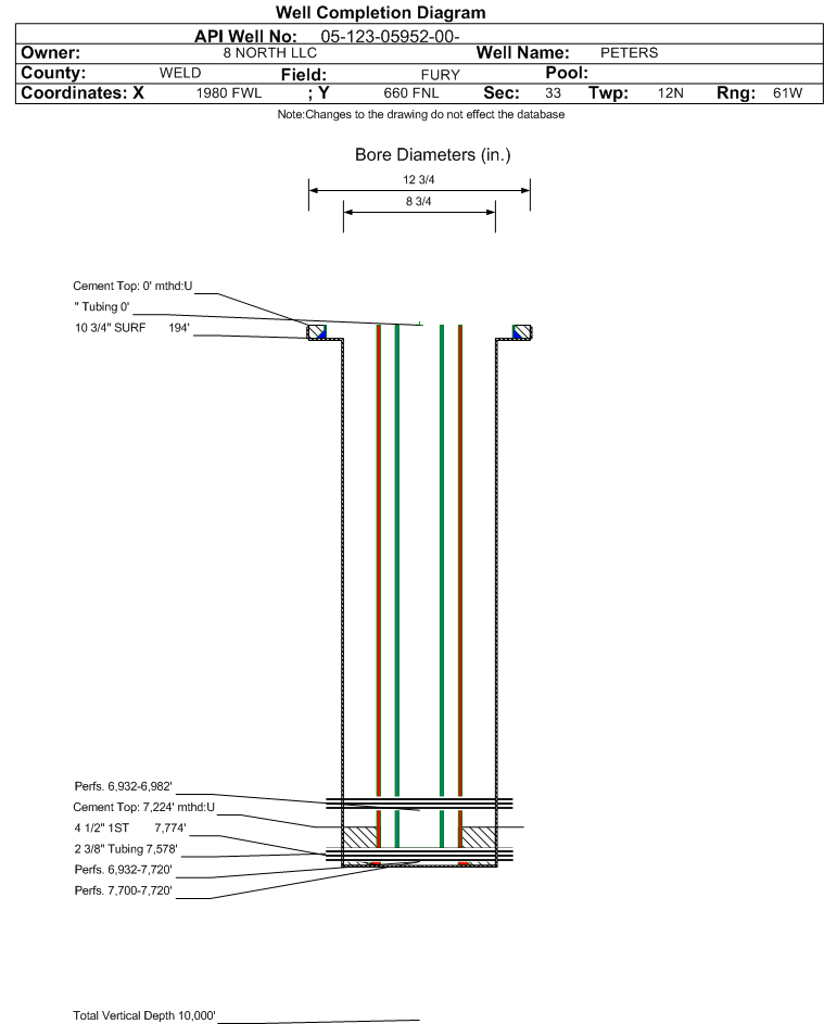 | | Perforation Data: | | Interval Top: | 6932 ft. | # Of Holes: | | | Interval Bottom: | 7720 ft. | Hole Size: | |