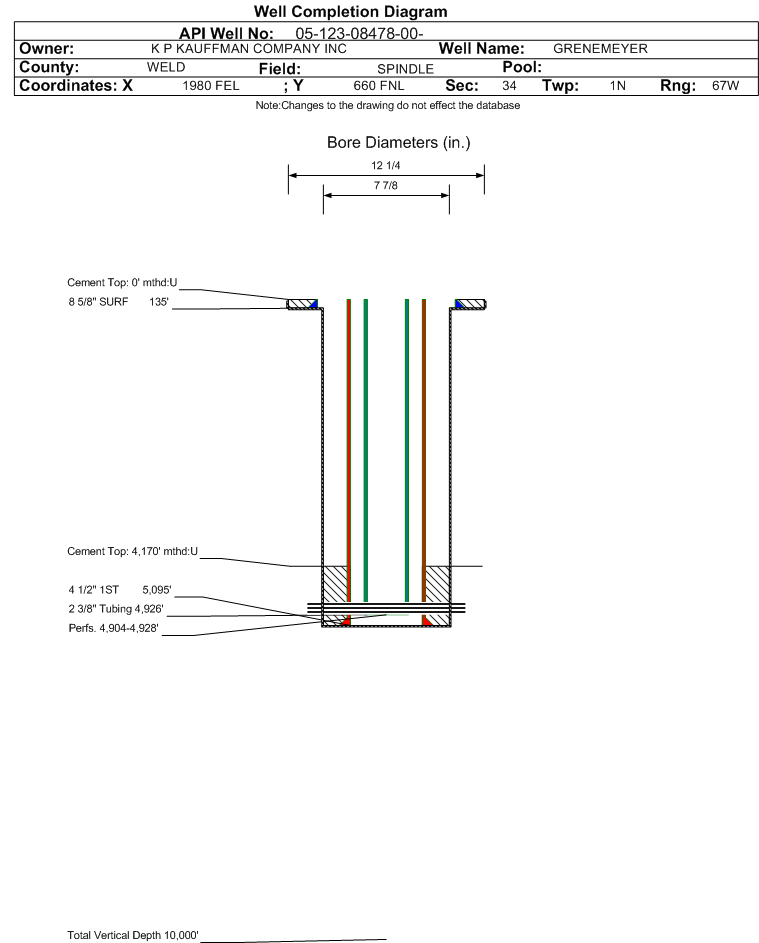 | | Perforation Data: | | Interval Top: | 4904 ft. | # Of Holes: | | | Interval Bottom: | 4928 ft. | Hole Size: | |