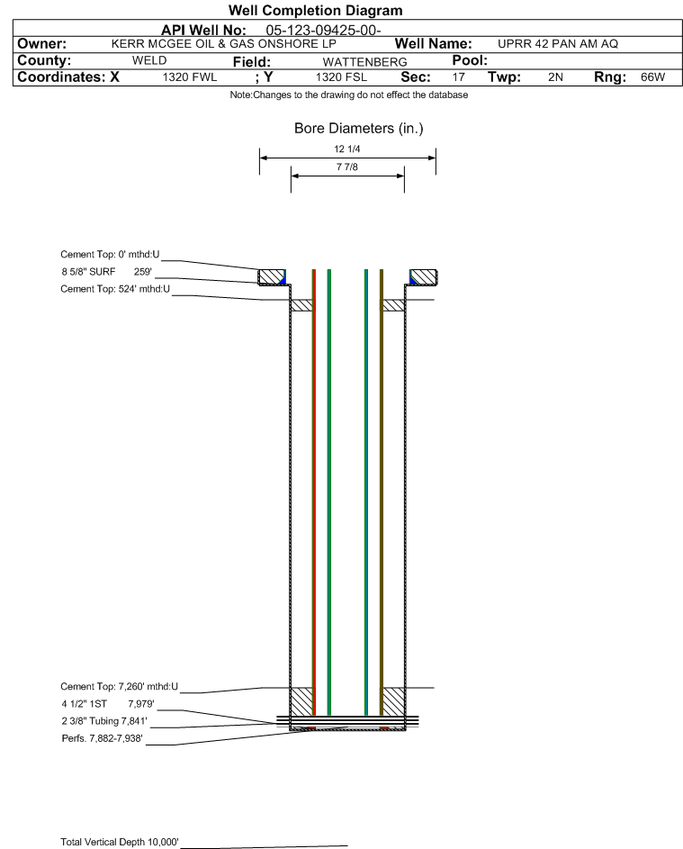 | | Perforation Data: | | Interval Top: | 7882 ft. | # Of Holes: | | | Interval Bottom: | 7938 ft. | Hole Size: | |