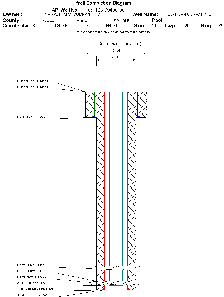 | | Perforation Data: | | Interval Top: | 4622 ft. | # Of Holes: | 184 | | Interval Bottom: | 4668 ft. | Hole Size: | |