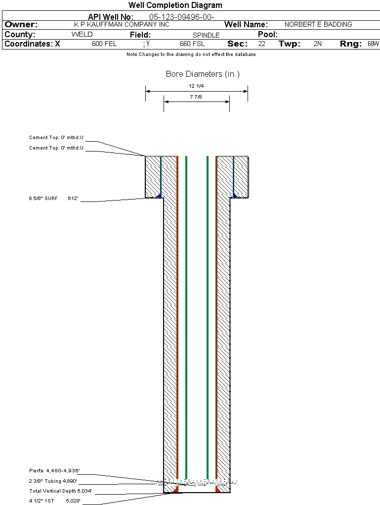 | | Perforation Data: | | Interval Top: | 4480 ft. | # Of Holes: | 112 | | Interval Bottom: | 4936 ft. | Hole Size: | 0.38 in. |