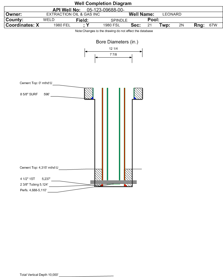 | | Perforation Data: | | Interval Top: | 4688 ft. | # Of Holes: | 77 | | Interval Bottom: | 5110 ft. | Hole Size: | |