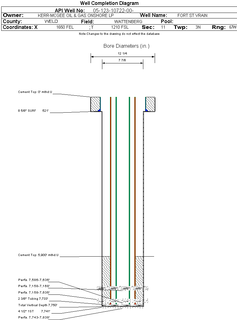 | | Perforation Data: | | Interval Top: | 7158 ft. | # Of Holes: | 20 | | Interval Bottom: | 7168 ft. | Hole Size: | |