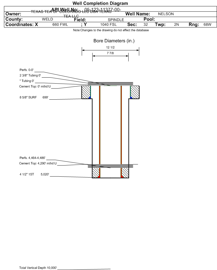 | | Perforation Data: | | Interval Top: | 0 ft. | # Of Holes: | 0 | | Interval Bottom: | 0 ft. | Hole Size: | |