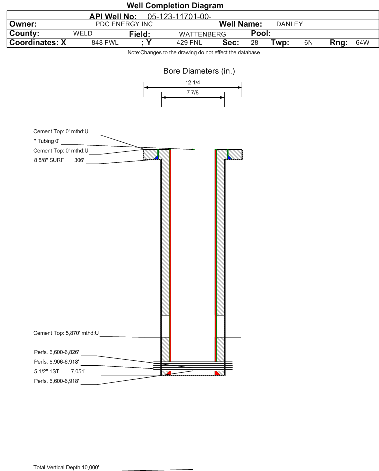 | | Perforation Data: | | Interval Top: | 6906 ft. | # Of Holes: | 67 | | Interval Bottom: | 6918 ft. | Hole Size: | |