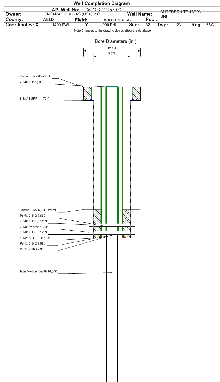 | | Perforation Data: | | Interval Top: | 7542 ft. | # Of Holes: | 112 | | Interval Bottom: | 7986 ft. | Hole Size: | |
