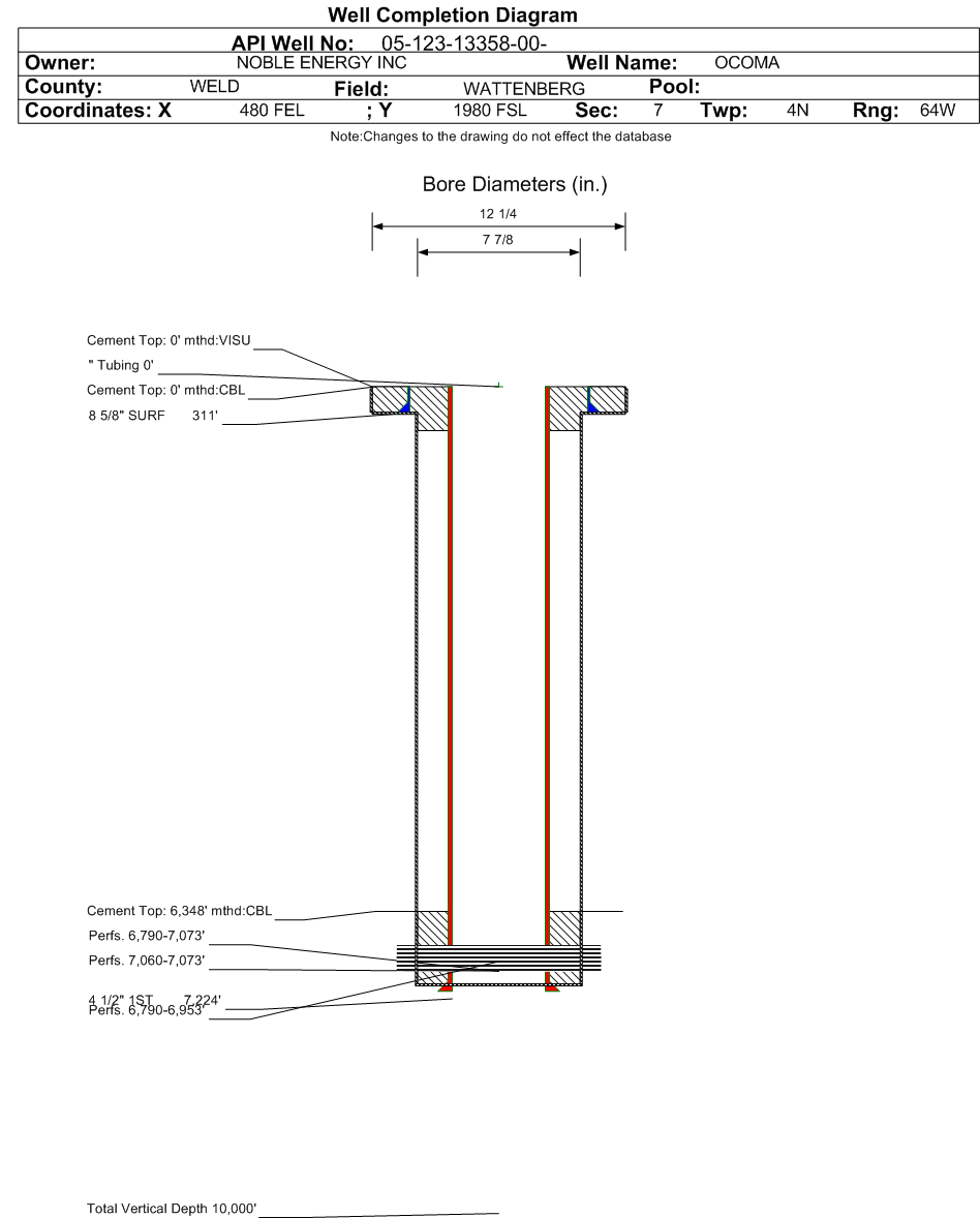 | | Perforation Data: | | Interval Top: | 6790 ft. | # Of Holes: | 251 | | Interval Bottom: | 7073 ft. | Hole Size: | |