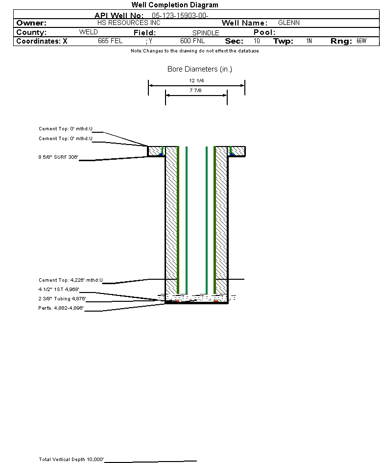 | | Perforation Data: | | Interval Top: | 4882 ft. | # Of Holes: | 42 | | Interval Bottom: | 4896 ft. | Hole Size: | 0.375 in. |
