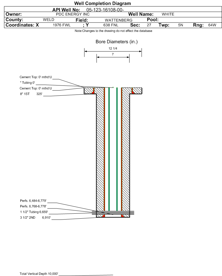 | | Perforation Data: | | Interval Top: | 6768 ft. | # Of Holes: | 80 | | Interval Bottom: | 6778 ft. | Hole Size: | 0.38 in. |