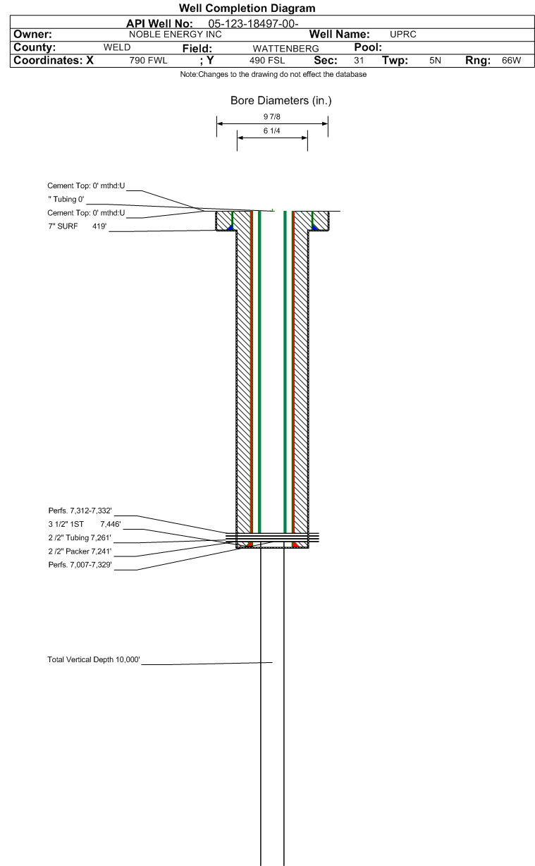 | | Perforation Data: | | Interval Top: | 7312 ft. | # Of Holes: | 80 | | Interval Bottom: | 7332 ft. | Hole Size: | |