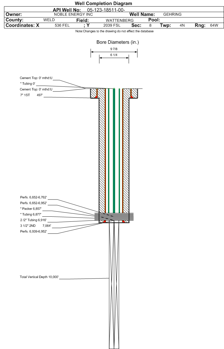 Wellbore #00 Wellbore Classification: OW Status: PA - 6/12/2024 Measured TD: 7071 ft. Vertical TD: 0 ft.| Wellbore Data for Original Wellbore | Wellbore Classification: OW PA - 6/12/2024 | | Wellbore Permit | DRIFTED | | Permit #: | 941184 | Expiration Date: | 3/1/1995 | | Proposed Depth/Form: | | | Surface Mineral Owner Same: | Not available | | Mineral Owner: | FEE | Surface Owner: | Not available | | Unit: | | Unit Number: | | | Formation And Spacing: | Code: NB-CD , Formation: NIOBRARA-CODELL , Order: 0 , Unit Acreage: 80, Drill Unit: E2SE |