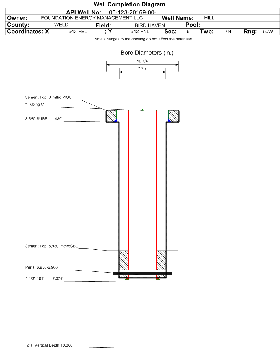 | | Perforation Data: | | Interval Top: | 6956 ft. | # Of Holes: | | | Interval Bottom: | 6966 ft. | Hole Size: | |