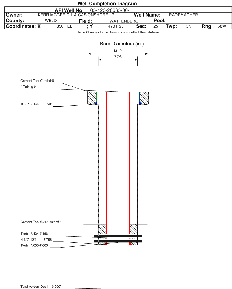 | | Perforation Data: | | Interval Top: | 7424 ft. | # Of Holes: | 64 | | Interval Bottom: | 7456 ft. | Hole Size: | 0.42 in. |