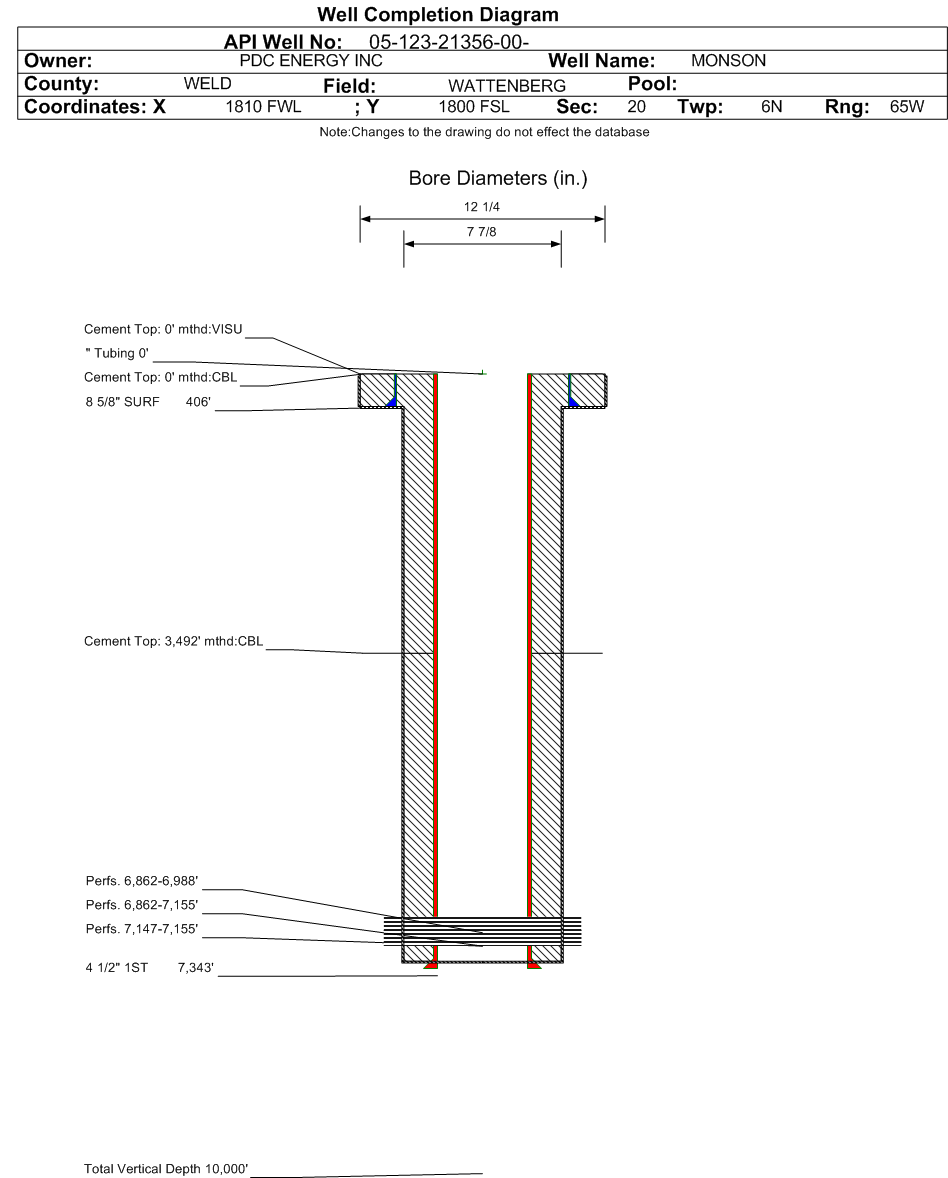 Cement:Sacks: 440, Top: 3492 ft., Bottom: 7343 ft., Determination Method: CBL