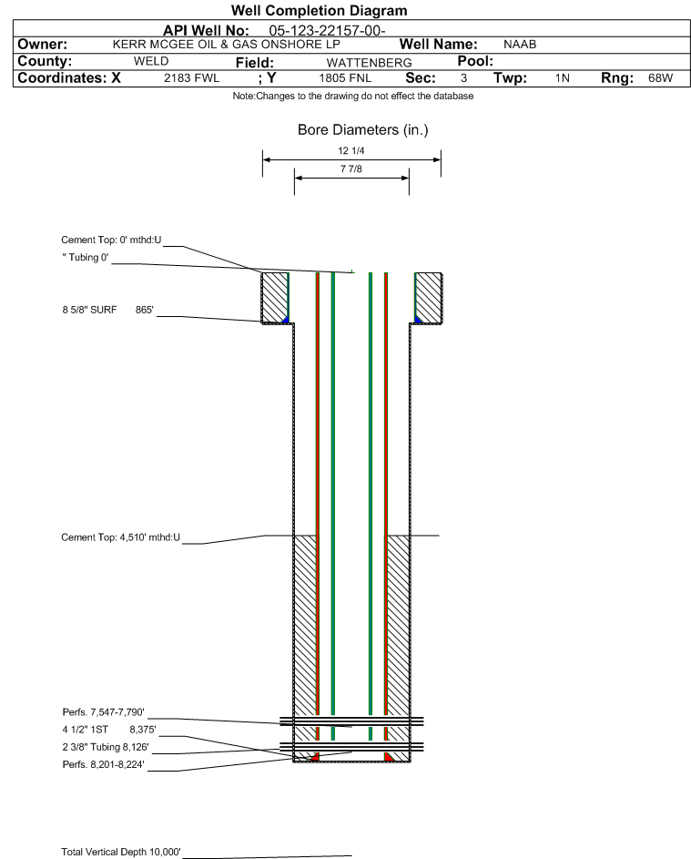 | | Perforation Data: | | Interval Top: | 8201 ft. | # Of Holes: | 64 | | Interval Bottom: | 8224 ft. | Hole Size: | 0.4 in. |