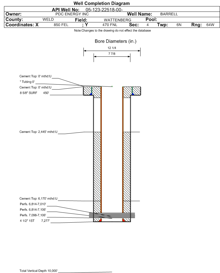 Cement:Sacks: 290, Top: 2445 ft., Bottom: 6170 ft., Determination Method: CBL