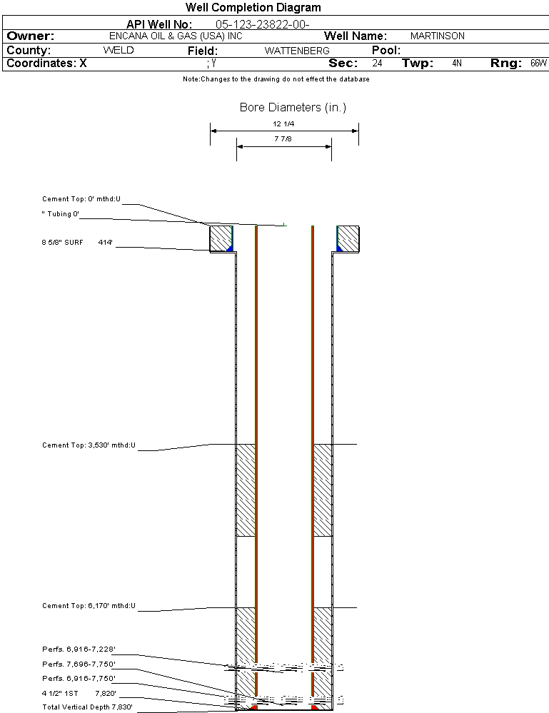 | | Perforation Data: | | Interval Top: | 6916 ft. | # Of Holes: | 212 | | Interval Bottom: | 7750 ft. | Hole Size: | 0.42 in. |