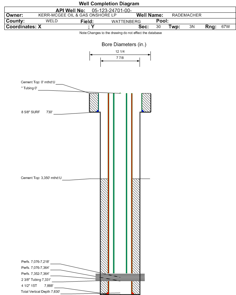 | | Perforation Data: | | Interval Top: | 7352 ft. | # Of Holes: | 48 | | Interval Bottom: | 7364 ft. | Hole Size: | 0.42 in. |