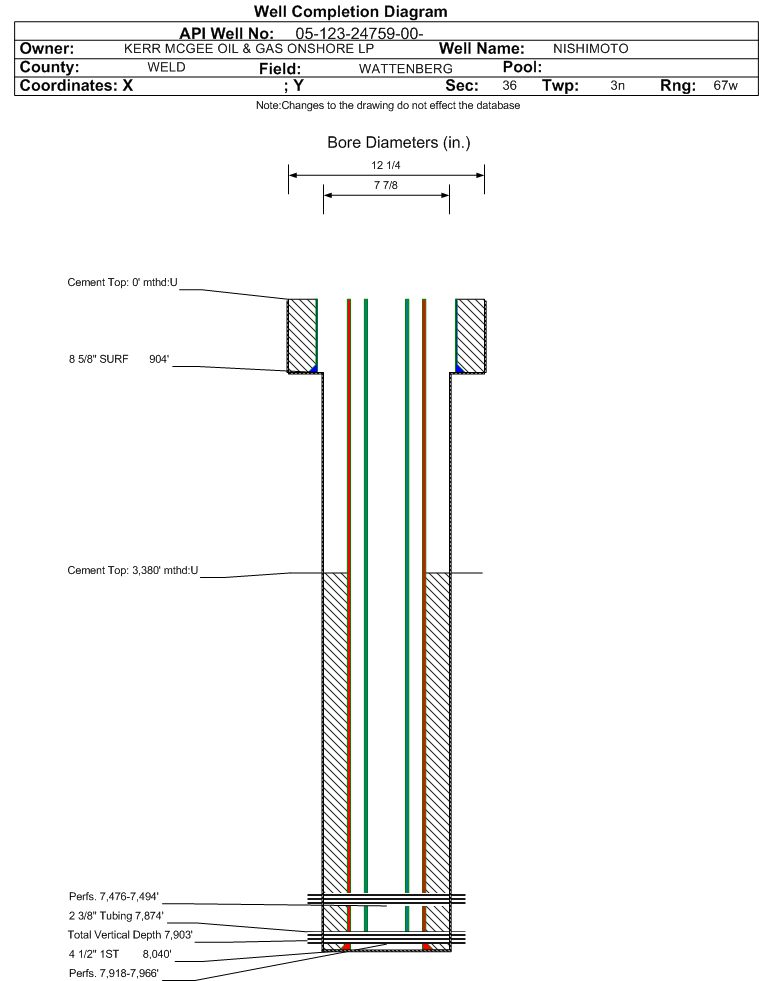 | | Perforation Data: | | Interval Top: | 7918 ft. | # Of Holes: | 80 | | Interval Bottom: | 7966 ft. | Hole Size: | 0.38 in. |