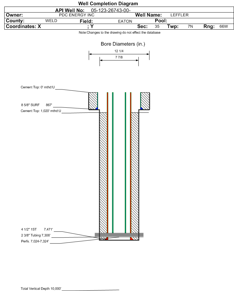 | | Perforation Data: | | Interval Top: | 7024 ft. | # Of Holes: | 28 | | Interval Bottom: | 7324 ft. | Hole Size: | 0.34 in. |