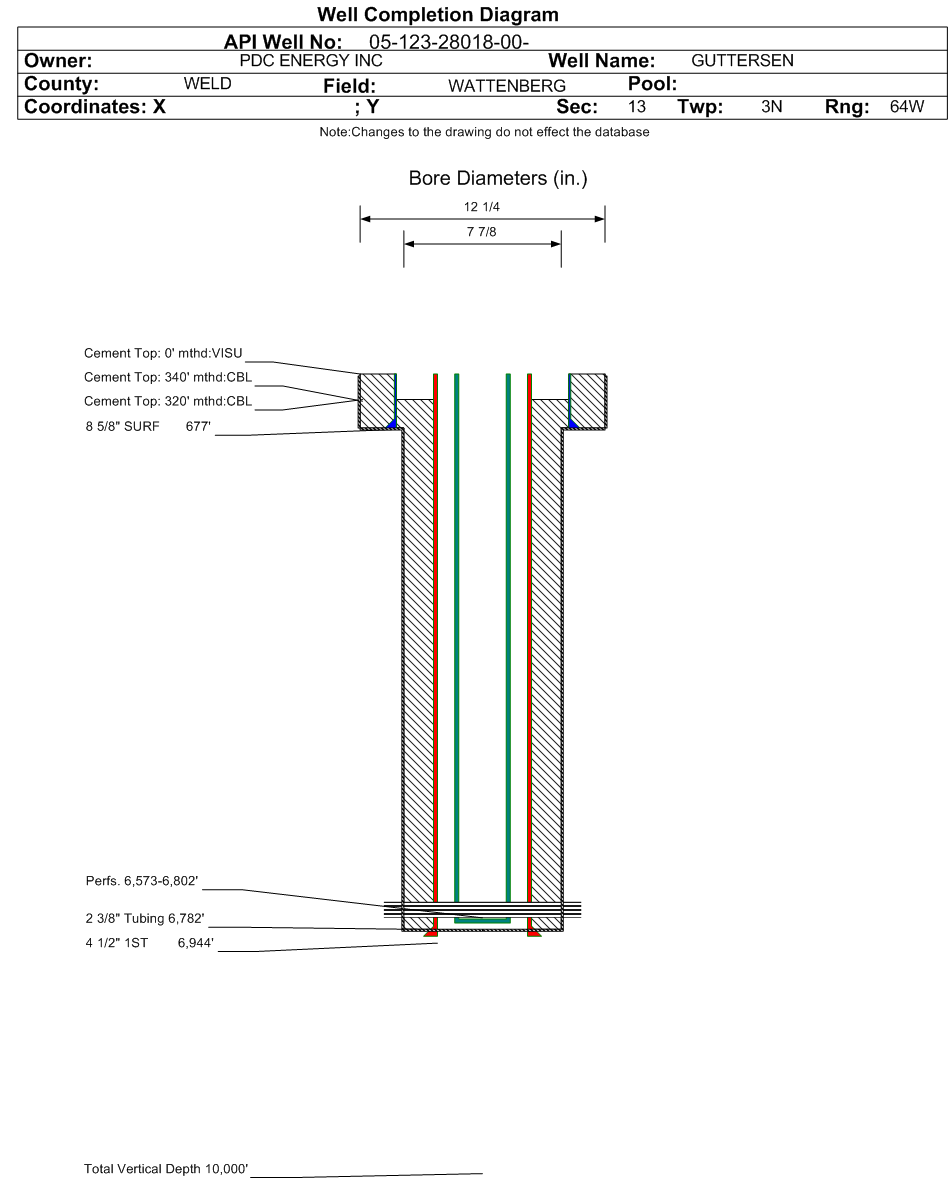 Wellbore #00 Wellbore Classification: OW Status: PA - 8/22/2019 Measured TD: 6969 ft.| Wellbore Data for Original Wellbore | Wellbore Classification: OW PA - 8/22/2019 | | Wellbore Permit | DRIFTED | | Permit #: | 20083776 | Expiration Date: | 8/10/2009 | | Proposed Depth/Form: | 7625 ft. | | Surface Mineral Owner Same: | No | | Mineral Owner: | FEE | Surface Owner: | FEE | | Unit: | | Unit Number: | | | Formation And Spacing: | Code: JSND , Formation: J SAND , Order: , Unit Acreage: 160, Drill Unit: GWA | | Formation And Spacing: | Code: NB-CD , Formation: NIOBRARA-CODELL , Order: 407-87 , Unit Acreage: 160, Drill Unit: GWA | | Casing: | String Type: STAGE TOOL, Hole Size: , Size: , Top: , Depth: 4700 ft., Weight: , Citings Type: PLANNED | | Cement: | Sacks: 125, Top: 3950 ft., Bottom: 4700 ft. |